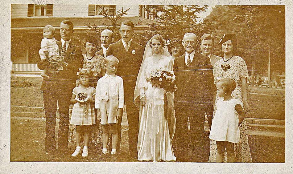The children in the front row are flower girl Betty Jean Field, James Henry Field (Jimmie) and Jean Marie Zerbe. I was almost 4.