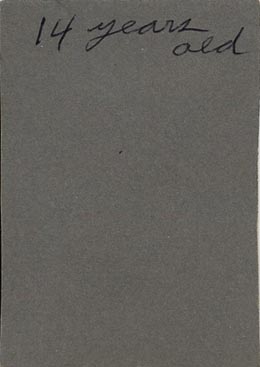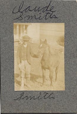 The writing on front and back of the photos are all original of either the Smith boys (most likely) or my grandmother. Photos #1 and 2 are of Claude, the third is the back side of the photo with the filly and the "14 years old" is written by my grandmother, Mary B. (Place) White. --Pat Gray, dpgray5@bbtel.com, posted here August 8, 2017