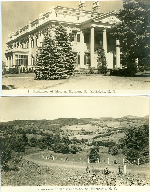 Top photo: Residence of Mrs. A. McLean, So. Kortright, N. Y. Bottom photo: View of the Mountains, So. Kortright, N. Y.