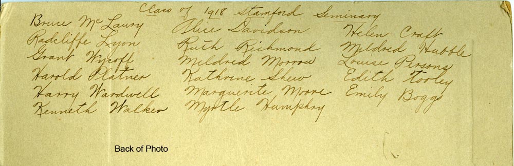 Class of 1918 Stamford Seminary Bruce McLaury, Radcliffe Lyon, Grant Wycoff, Harold Platner, Harry Wardwell, Kenneth Walker