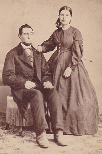The photograph appears to have been taken in the 1860's with Julia in her teens and her brother likely in his 20's. In addition to their names, someone notes that they are "Nana's brother and sister" and that Julia is the "Mother to Jo VANSICKLE" as well.