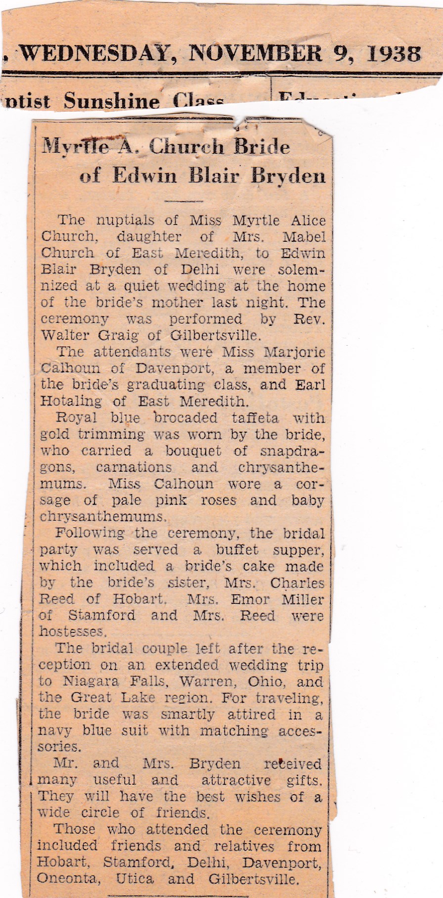 I have recently received quite a few clippings for my family and a few that were apparently family friends obits, marriage announcements and clippings from WWI notices of death lists from The Star in Oneonta. Even though they are from the Oneonta Star many of these people's relatives and they themselves lived in the Delaware county area. I am sure many would find it useful information. --Ruth VanAlstine, August 1, 2018