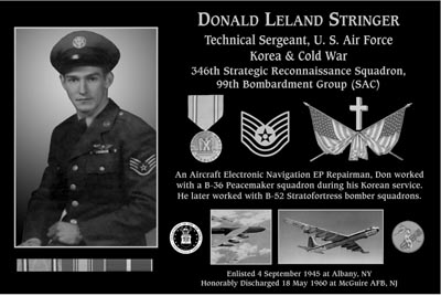Among many other veterans, a plaque will be dedicated for both Donald L. Stringer (my father, DOD: 3/1/92 buried in Veterans Cemetery in Houston, TX) and Harlan W. Stringer (his youngest brother, still lives in Sidney) at the Sidney Veterans Memorial Park: http://www.sidneyveteransmemorialpark.org/ --Mary Stringer, May 25, 2016
