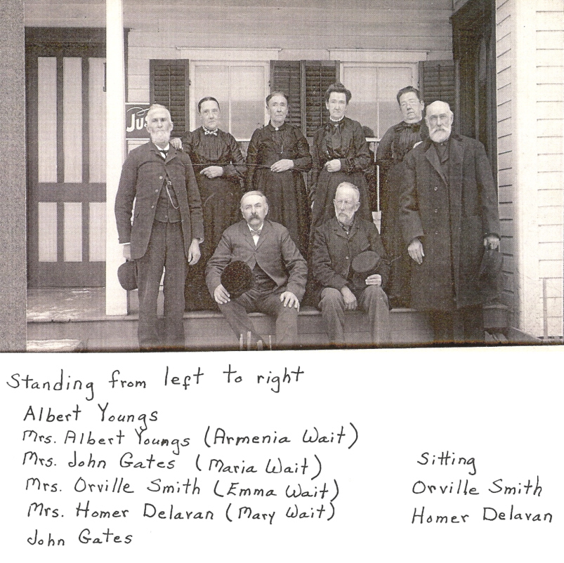 Photo taken sometime before 1918 - The folks in this picture were mainly in the Sidney & Unadilla area. The identifications may have been done by Youngs descendant Ruth Sanford. The women were daughters of Ahijah and Jane (Spencer) Wait (who died 1881 & 1895) and are shown with their spouses.