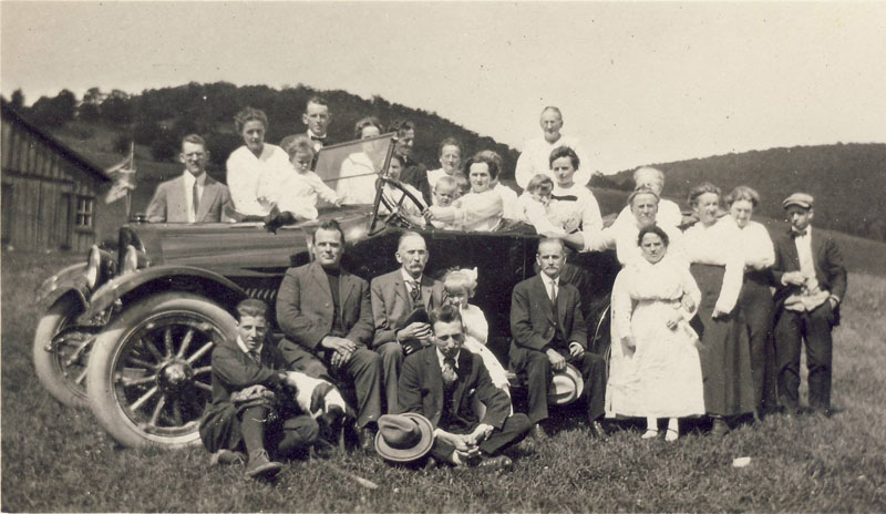 The short woman in front is my Great Aunt Olive M Gray, this is a photo in her collection. Olive's brother Leon is way in the back with his head turned. I have a treasure box of pictures that I have just started going through and scanning. Many with no identification. Luckily, she is very easy to id. --Courtesy of Linda Nowak, 15 March 2017