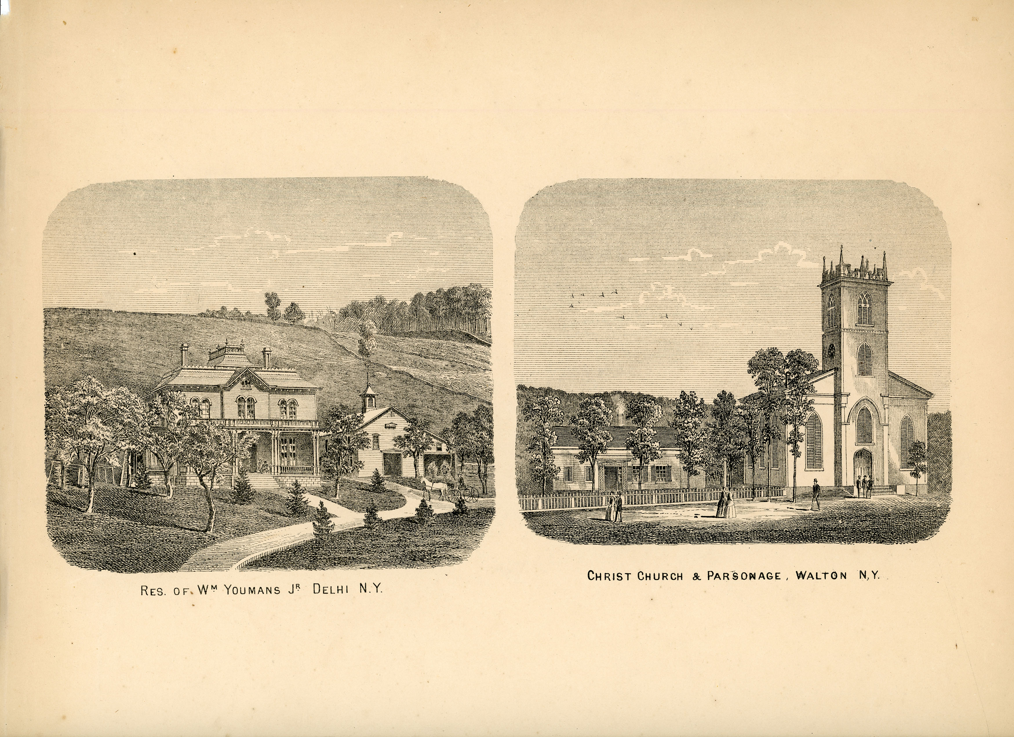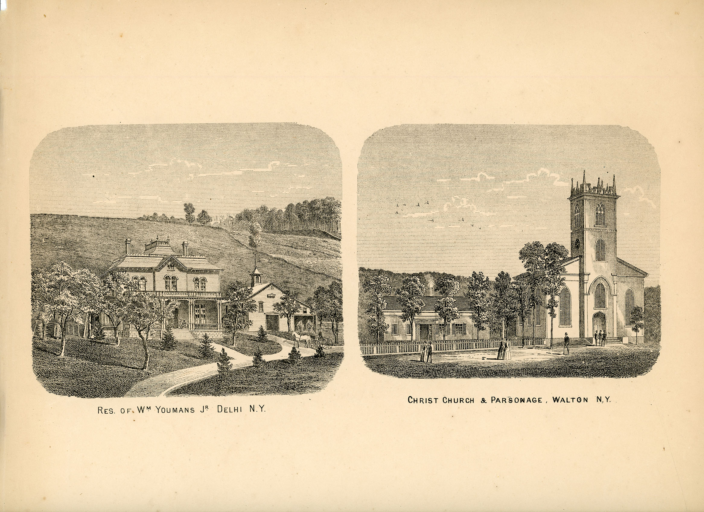 VIEWS - Res. of Wm. Youmans Jr Delhi N.Y. and Christ Church & Parsonage Walton, N.Y.