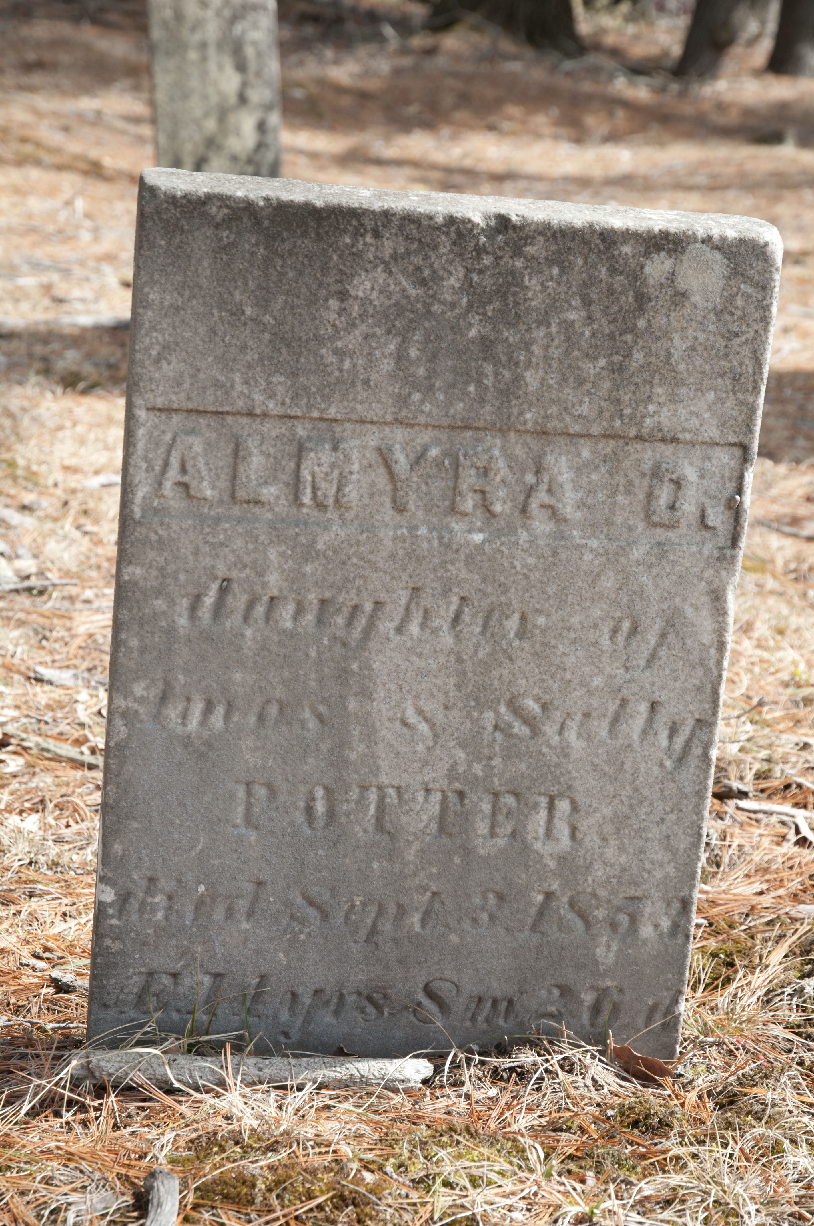 POTTER, Almyra D., d. 09/03/1853 11y-8m-26d Daughter of Amos & Sally Potter