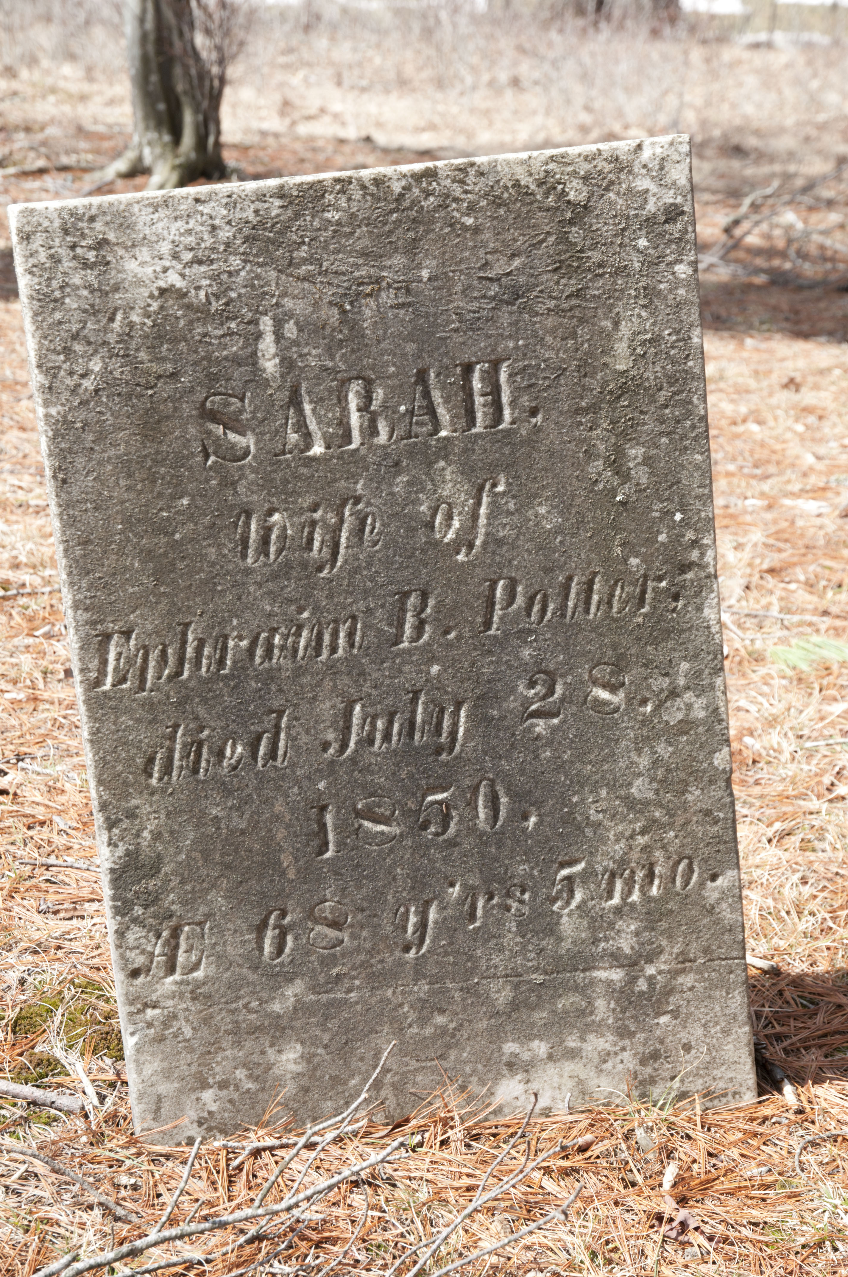 Sarah, wife of Ephrain B. Potter died July 28 1850 AE 68 yrs 5 mos.
