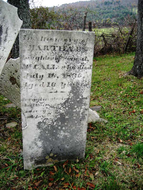 | | McCall, Mary | 67yr | 27 Mar 1839 | Wife of Ira |