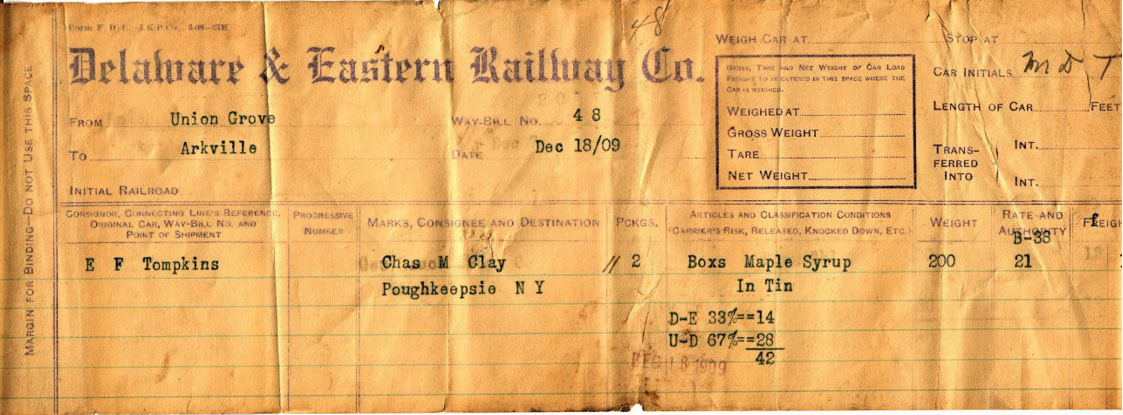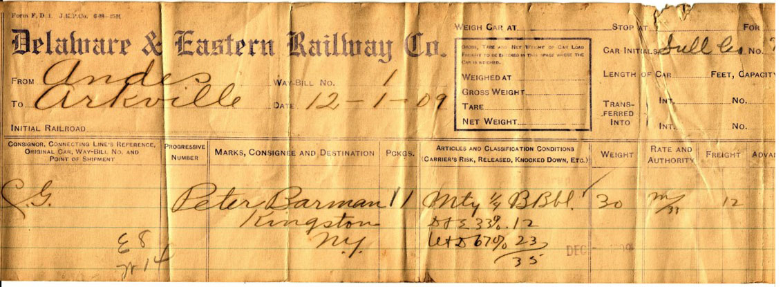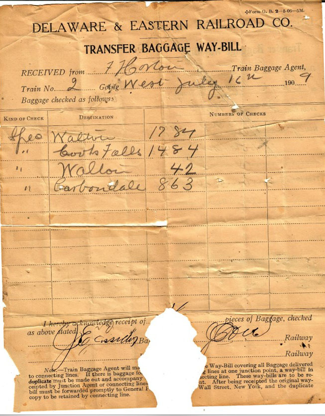 Here is a little history I found about the Delaware and Eastern Railroad. --Roger D. Davis