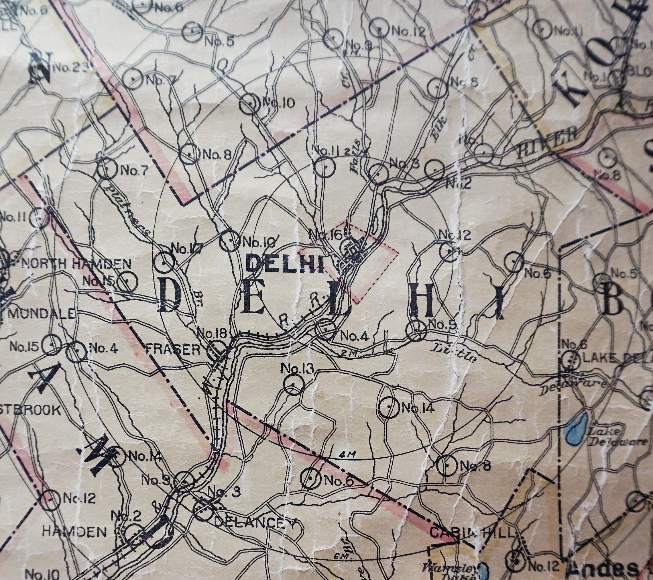 This Delhi section was taken from a Delaware County Map that shows all the school houses in the county. The map is from the early 1900s. VIEW FULL MAP - then use mouse to increase size for up close viewing