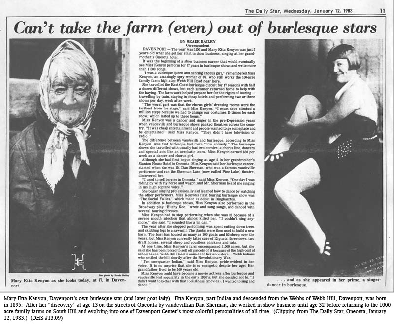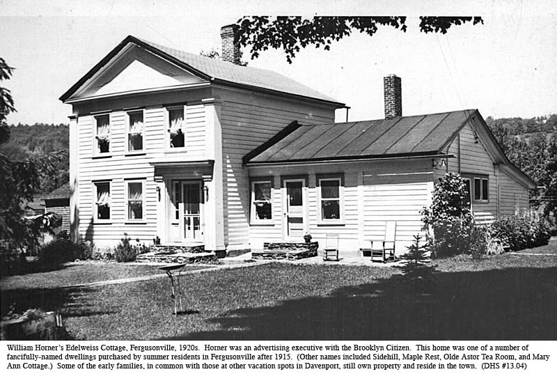 [7] City folks in Fergusonville. (This section derives from Mary Beardsley, “Summer Days and Fun Days – ‘City Folk’ in Fergusonville.” Handwritten, n.d. (2002), in Davenport Historical Society files.)
