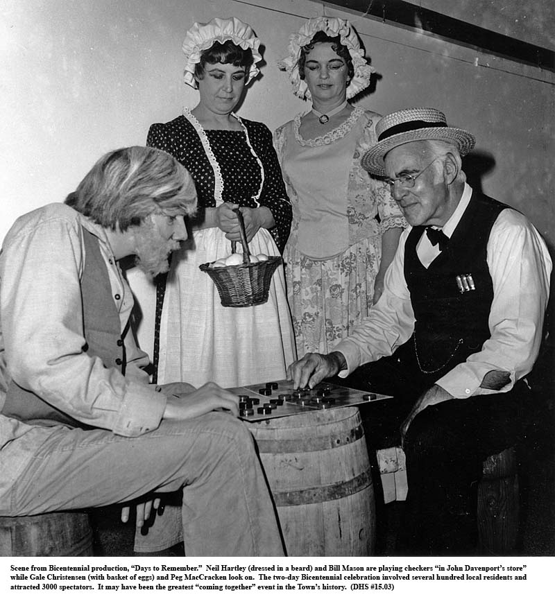 The 1976 Bicentennial was a throwback to those earlier times when within-town socializing was a way of life for most residents. It brings to mind particularly the fairs of the 1800s, the tent revival meetings, and the Old Home Days of the 1920s. There were nevertheless some distinctly modern touches that illustrate how much Davenport has changed over the years.