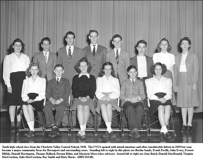 The school controversies of the 1930s ended in 1938, and the Charlotte Valley’s new Central School has grown and prospered, becoming an ever more central part of community life. It has adopted the hallmarks of modern education such as drivers’ education, home management, a range of sports and extra-curricular activities, a modern science facility, and most recently, classroom computers linked to the Internet.[3] In December 2002 a new classroom wing was inaugurated, providing improved facilities for special education students and for joint study programs for fifth and sixth grade students.