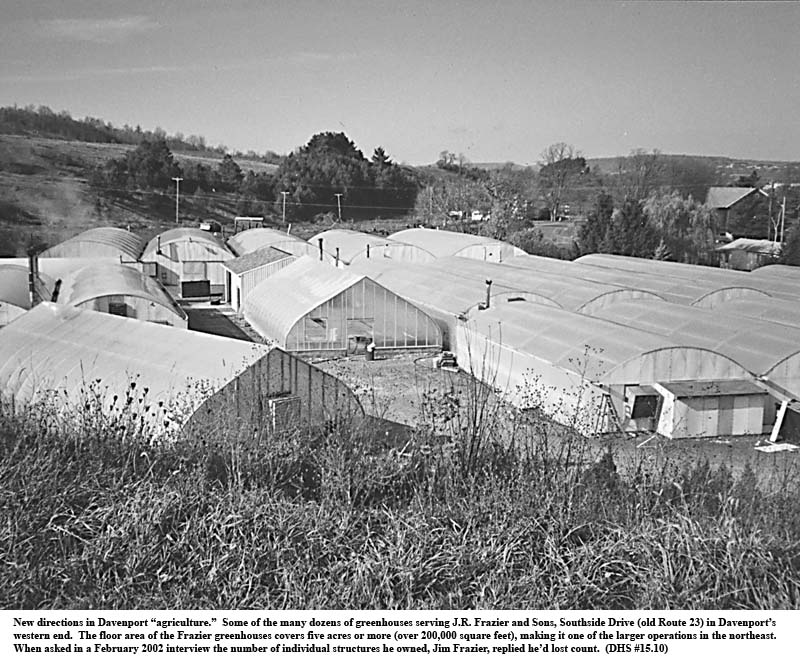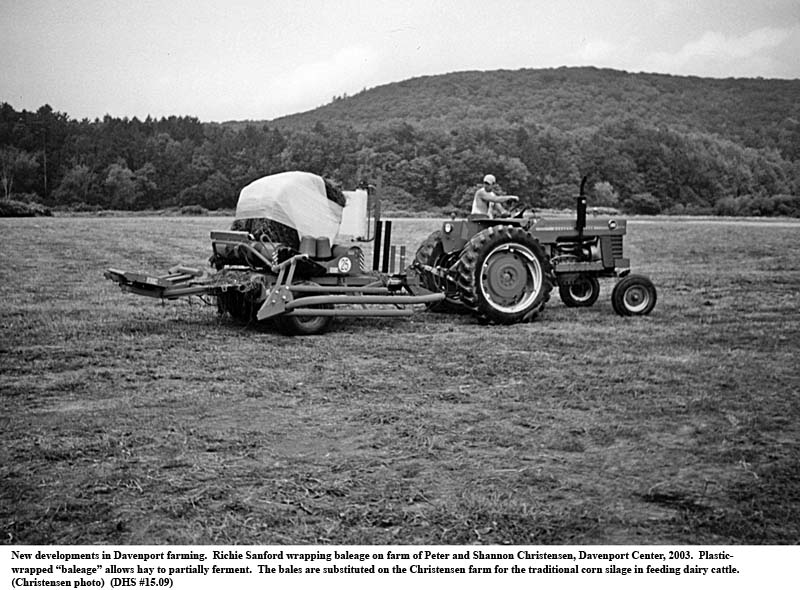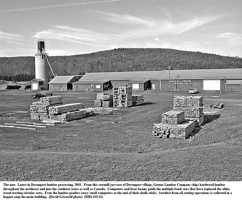 What wonders modern times hath wrought. Major technological changes of the modern era have been touched upon in previous chapters. Chief among those most important for Davenport has been electric power, the telephone, and the road networks. These in turn have permitted minor revolutions such as school centralization, the ability to respond quickly to fires and other emergencies, and the transformation (of which more below) in the town’s traditional core industries, dairy farming and lumbering. More recently have come the omnipresent television receivers, CD and DVD recordings, and the still expanding home and commercial use of computers. (Witness the CD-ROM included with this volume.)
