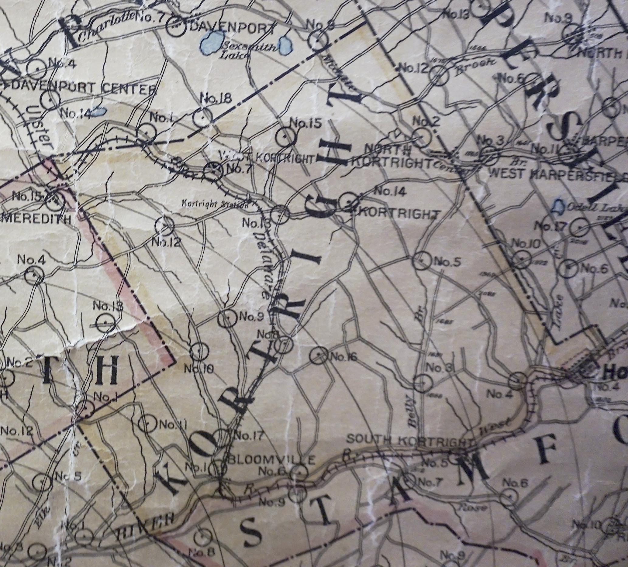 This Kortright section was taken from a Delaware County Map that shows all the school houses in the county. The map is from the early 1900s. VIEW FULL MAP - then use mouse to increase size for up close viewing