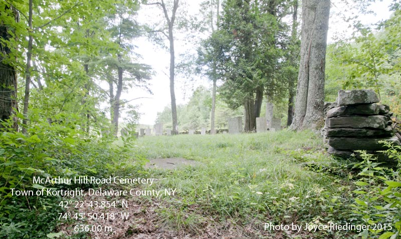 This small cemetery is located on the north side of McArthur Hill Road in the town of Kortright.