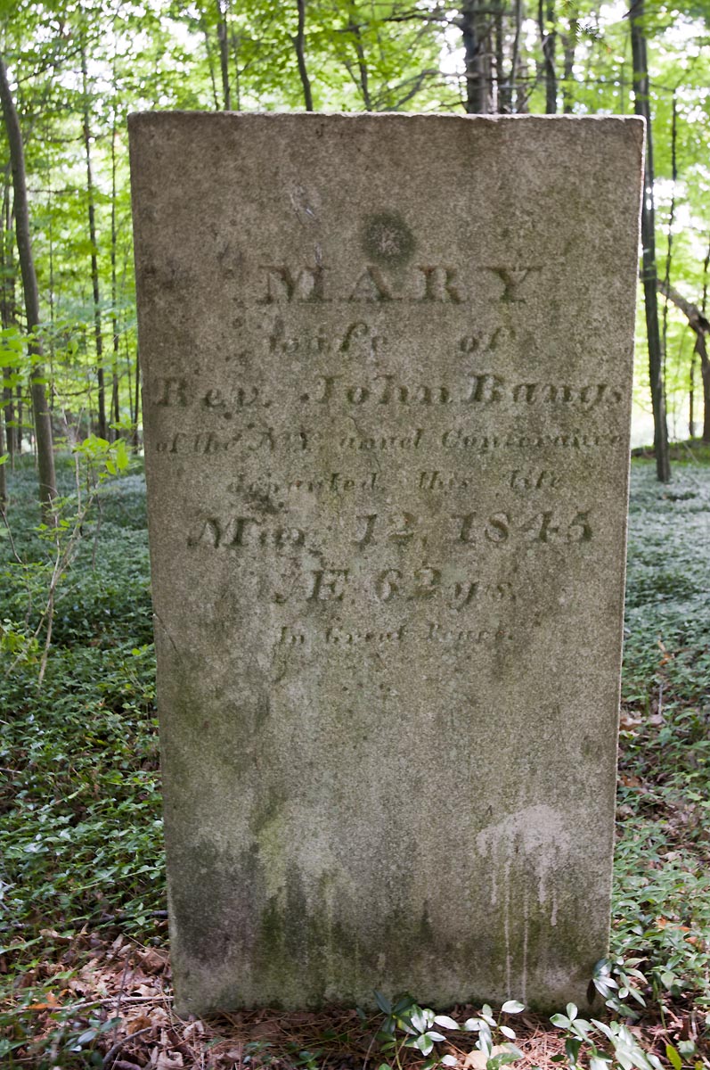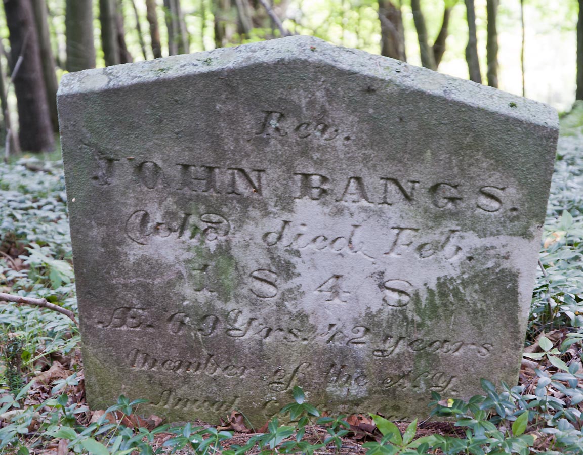 The remains of John Bangs, and his wife Mary, removed from this old Burying ground and reintered in the The Stamford Cemetery by the Methodist Church Society, in the summer of 1923.