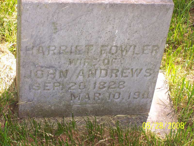 ANDREWS, Harriet Fowler 83y March 10, 1911 Wife of John