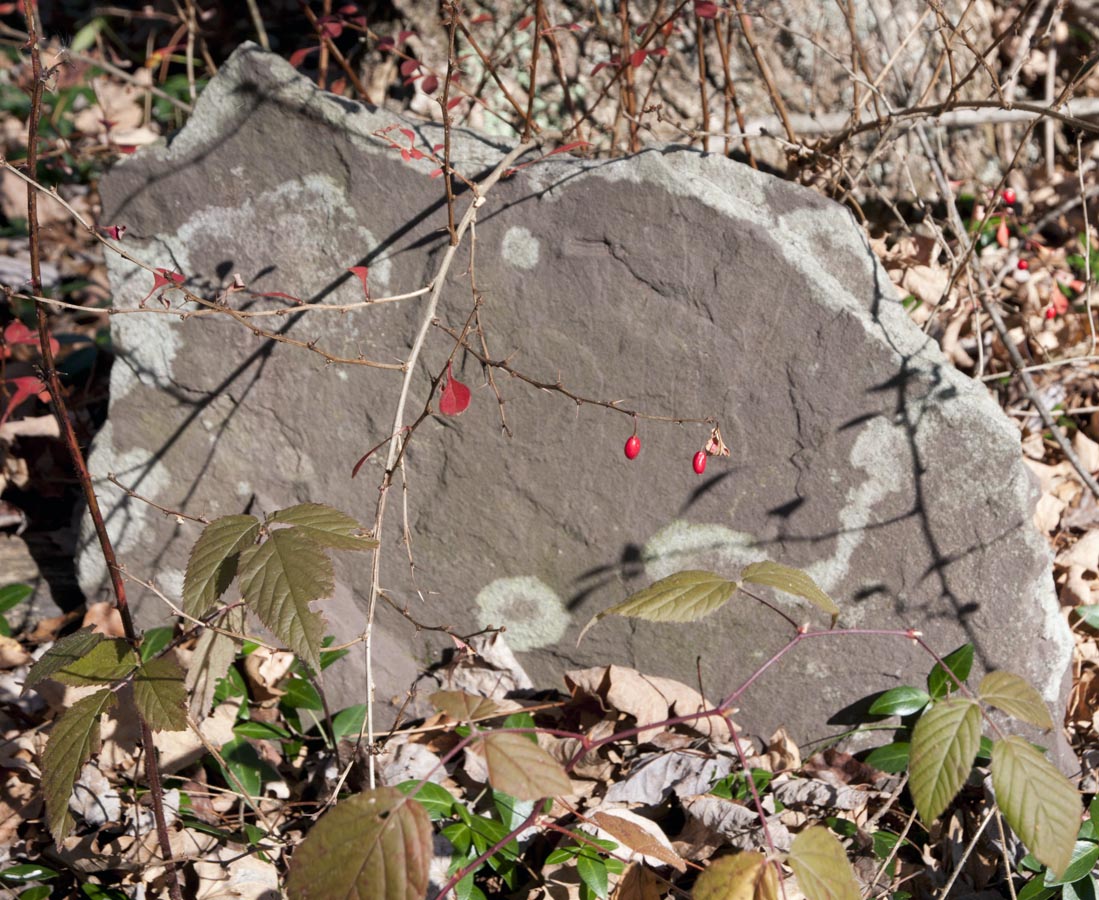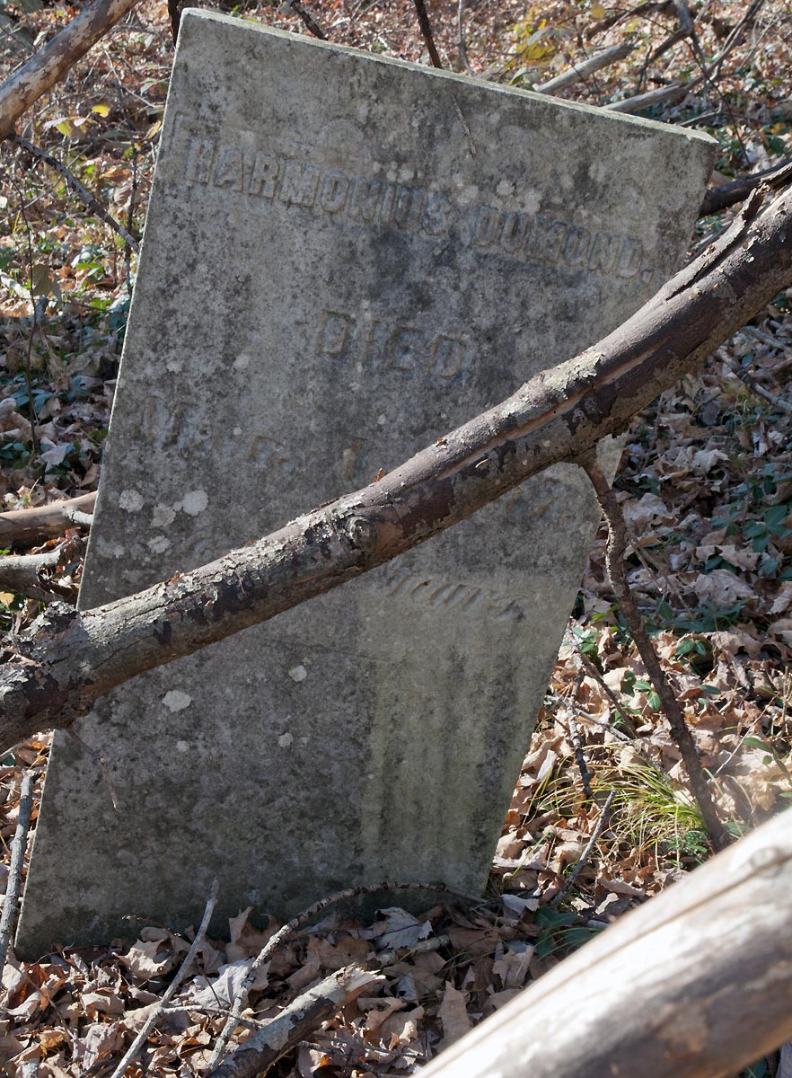 Joyce note of 2015: this stone leaning on tree next to Harmonius Dumond stone (only letter D)