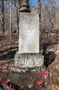 Visited May 24, 1998. This is about 0.2 miles from NY 28, on the left side, through the fields, across the small brook, and up the hill. It is surrounded entirely by a stone wall. It is uphill from a few old apple trees. It is approximately 126 by 64 feet. It is not visible from Gay Brook Rd. There is brush growing in the cemetery, and many stones are down, some are broken, and some are of field stone, and have had their surfaces exfoliated over the years. The largest marker is a small monument to Mills. This small cemetery was catalogued by my wife and me on May 24, 1998. It is old and in disuse.