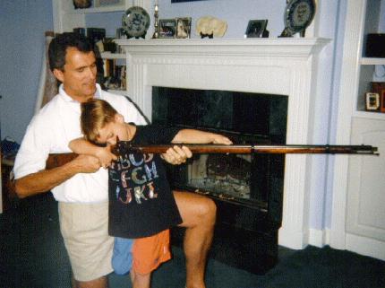 Webmaster and son "sighting in" Springfield Rifle carried during Civil War by James W. Myers