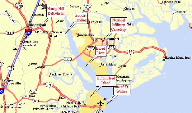Mapof Hilton Head, Honey Hill and Beaufort, S.C.