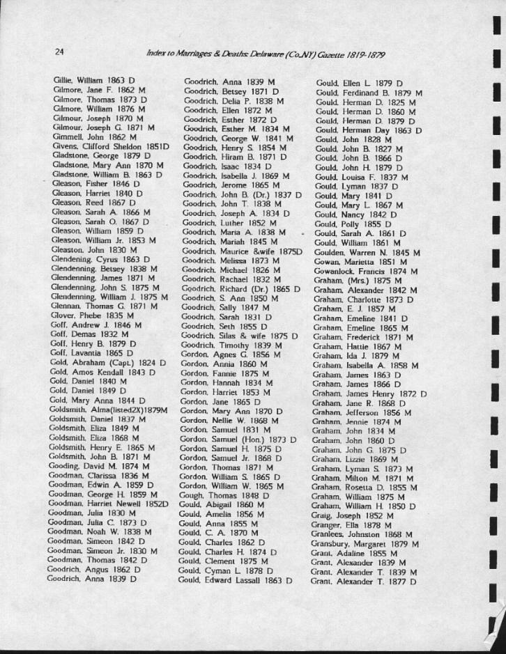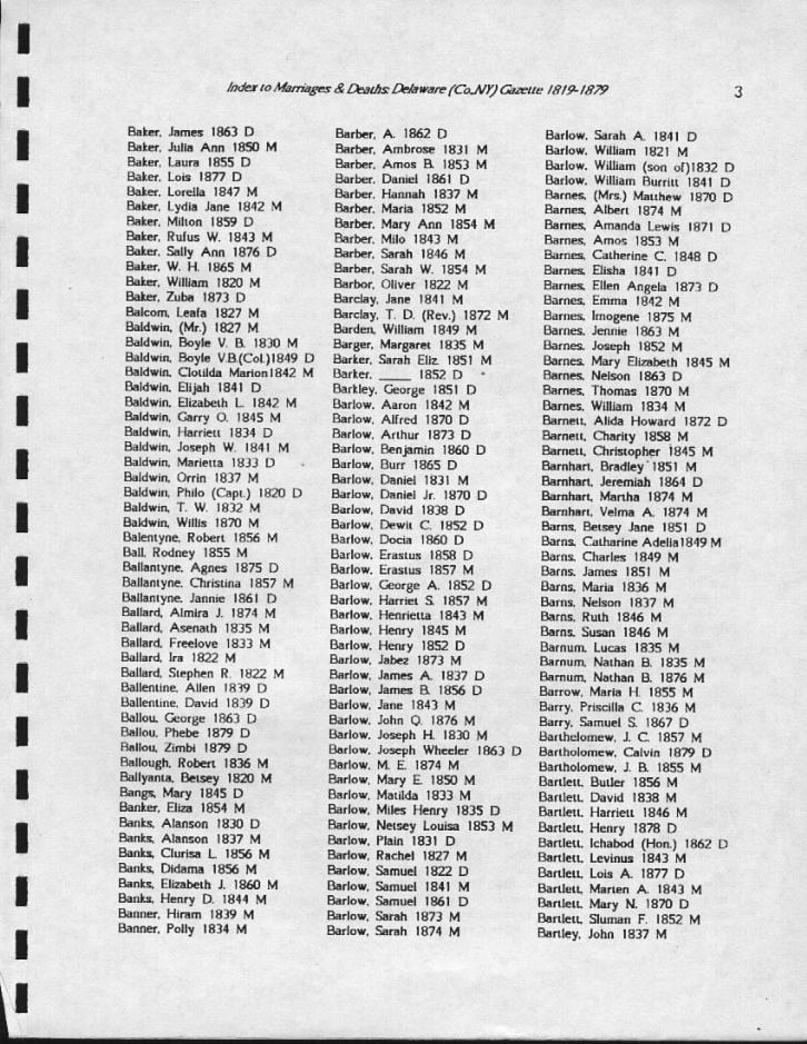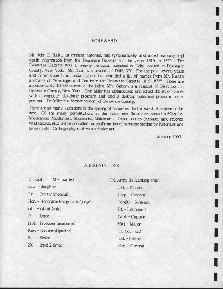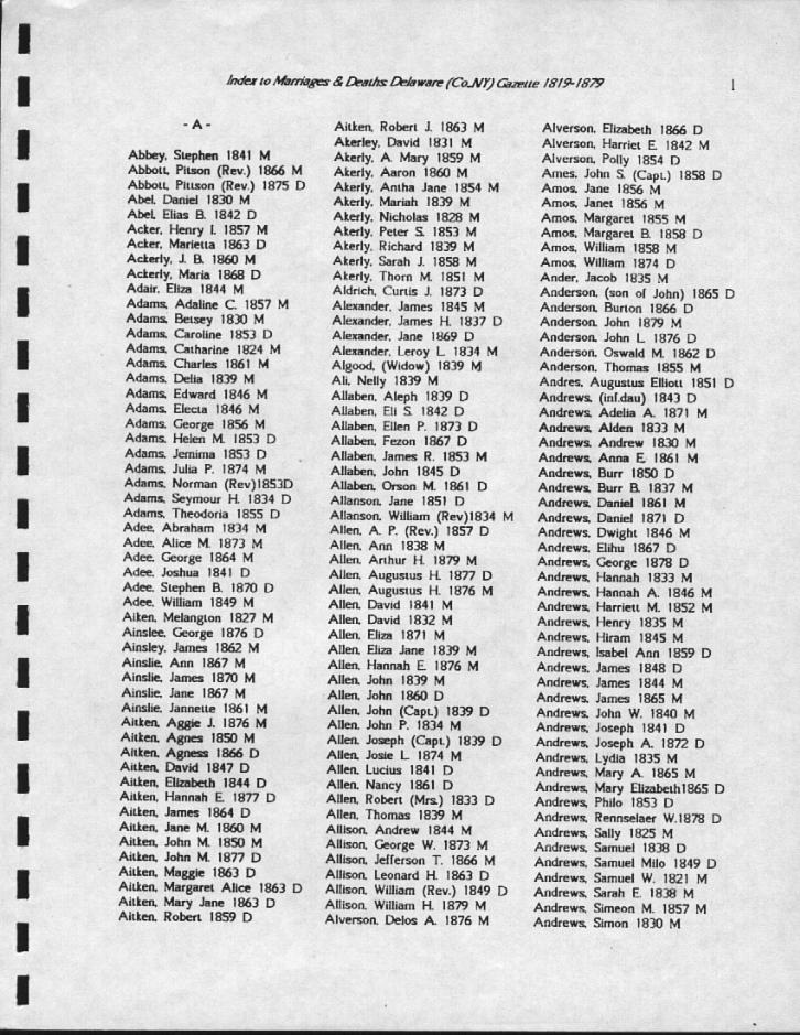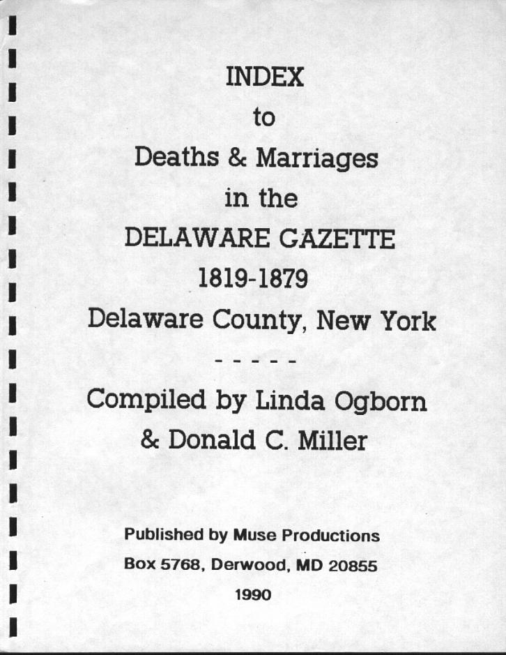 Welcome Page of the Delaware County NY Genealogy and History Site . . . | . . . Table of Contents Page . . . | . . . Contact Site Manager
