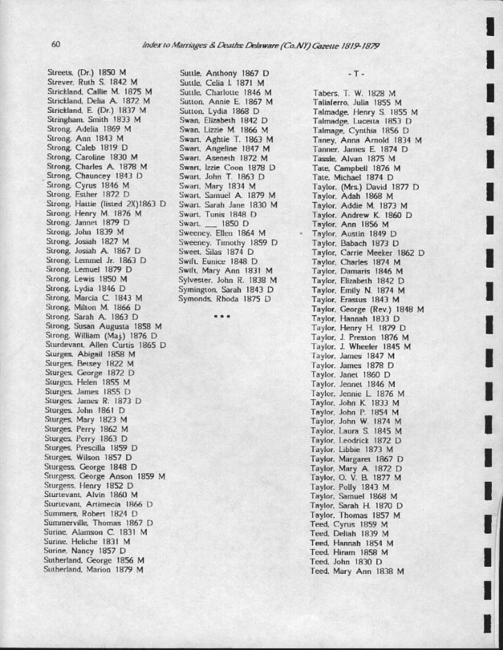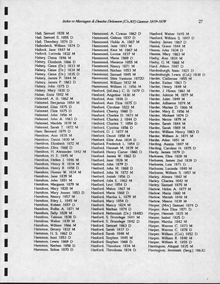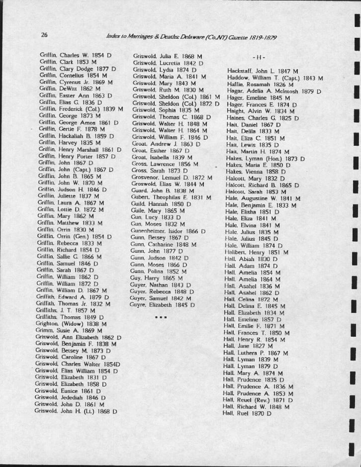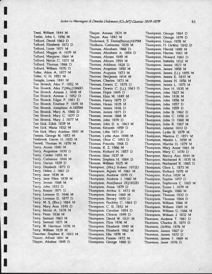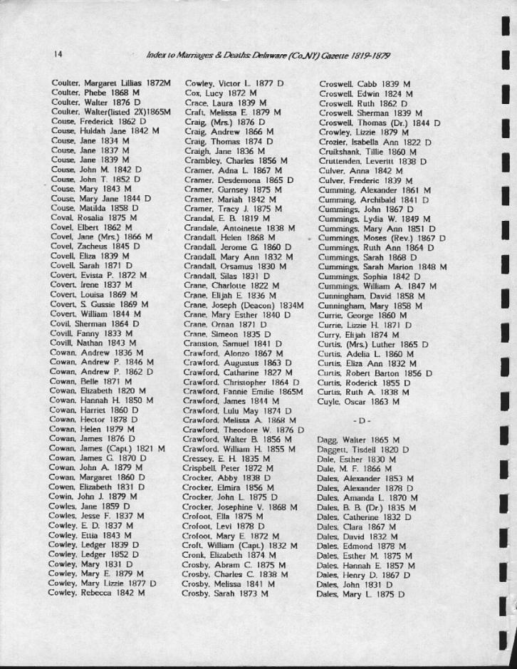 Welcome Page of the Delaware County NY Genealogy and History Site . . . | . . . Table of Contents Page . . . | . . . Contact Site Manager
