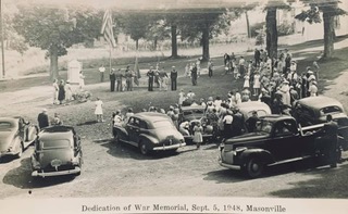 Photo is a recent post card that was uploaded to our Ghosts of Masonville Facebook page that shows the dedication ceremony for the memorial on Sep 5, 1948.