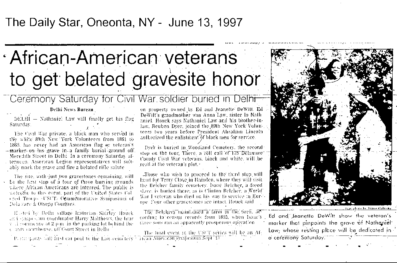 - African-American Veterans- Ceremony for Civil War soldier buried in Delhi