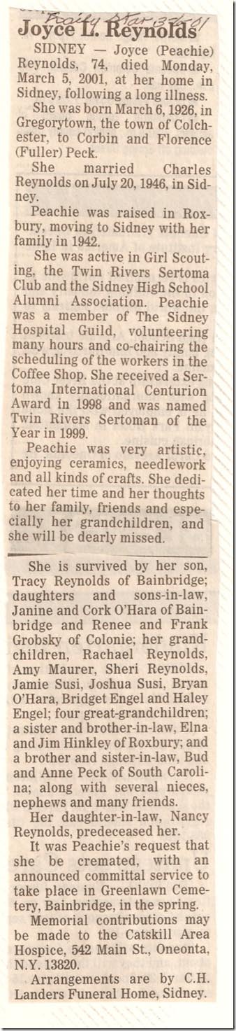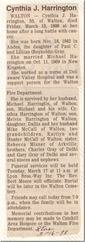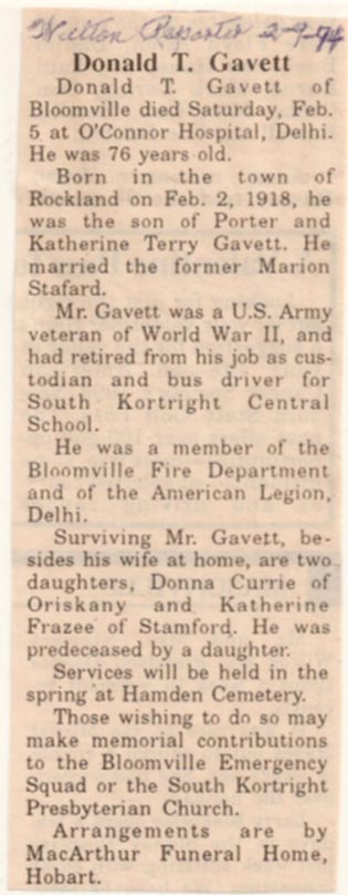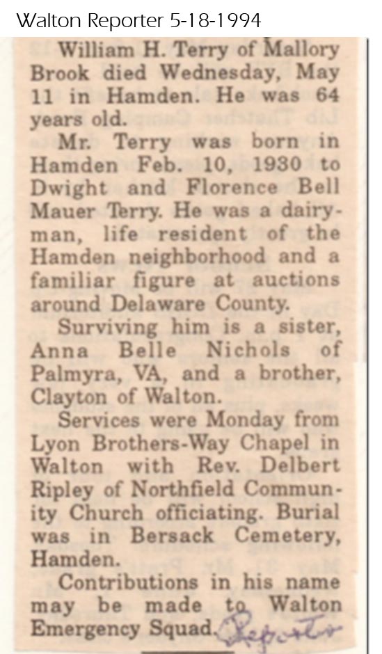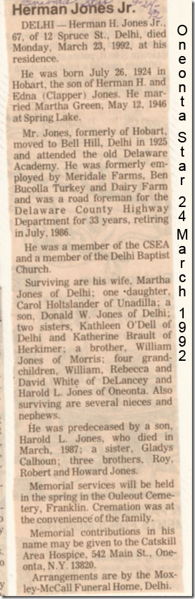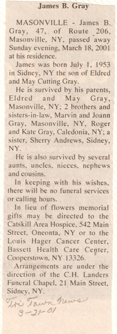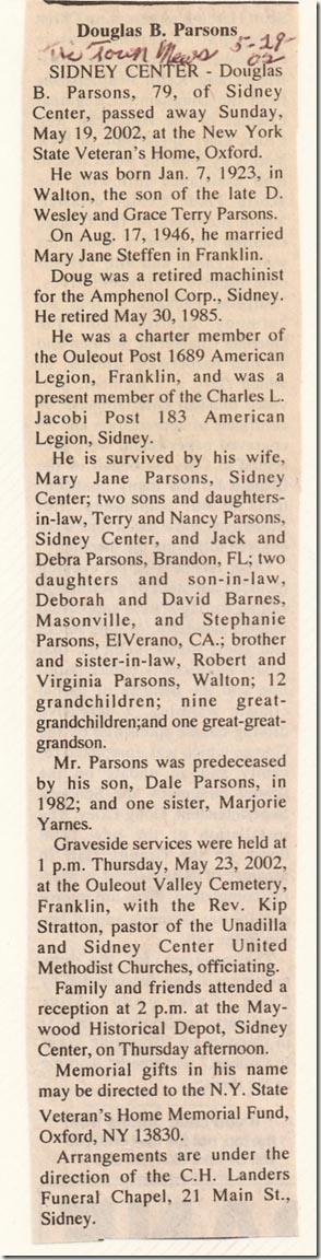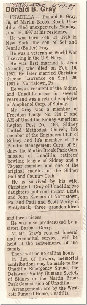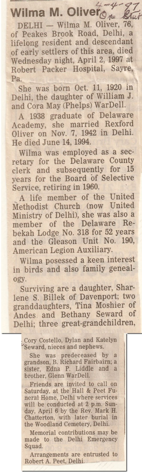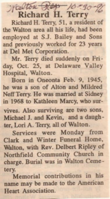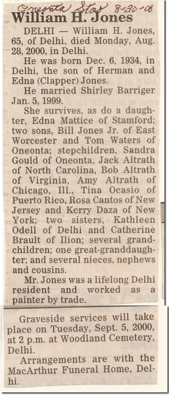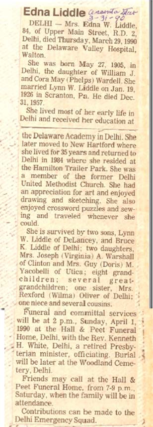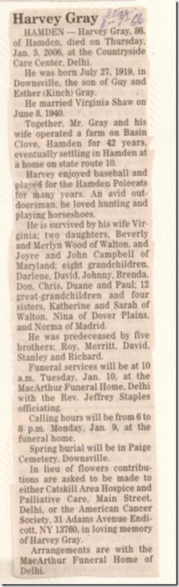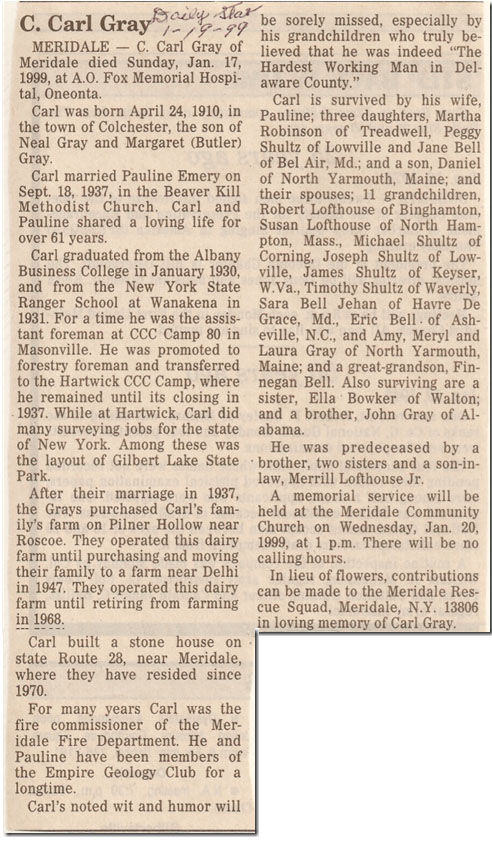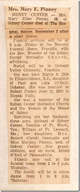 Links to obituaries from a scrapbook of my Mother-in-law’s. Where "Star" is written it referred to the Daily Star, Oneonta, NY. Dates should be self explanatory or written on. --Pat Gray - dpgray556@gmail.com