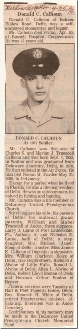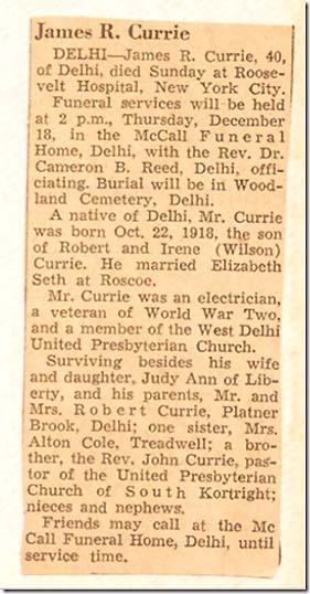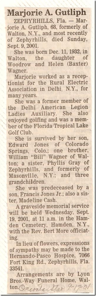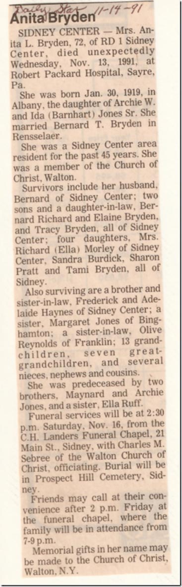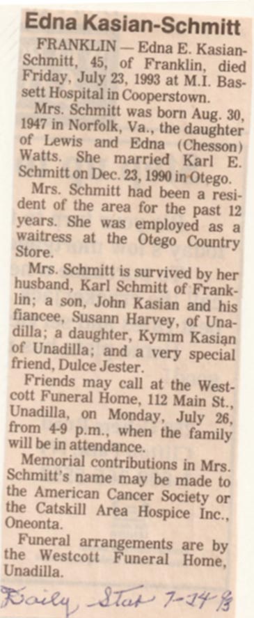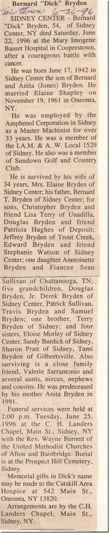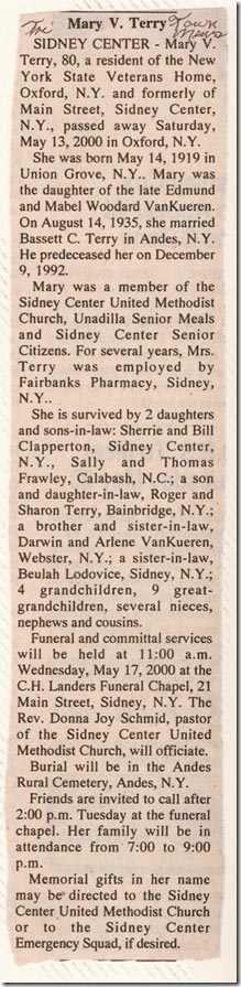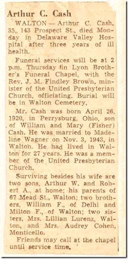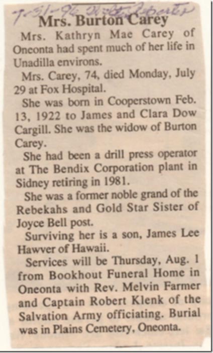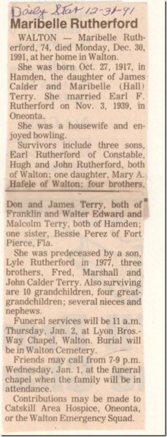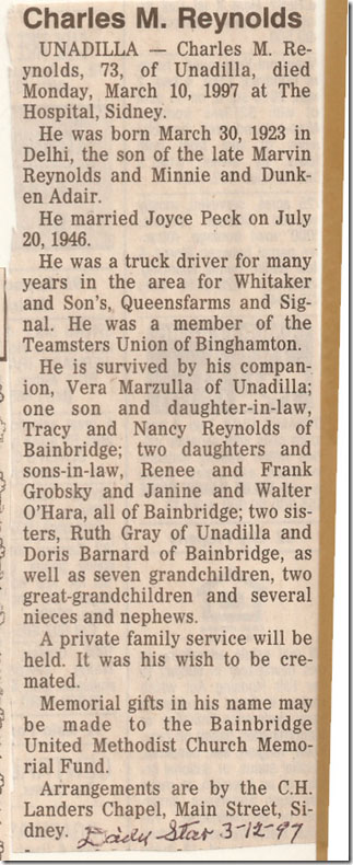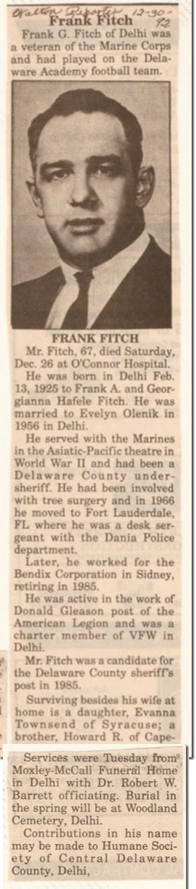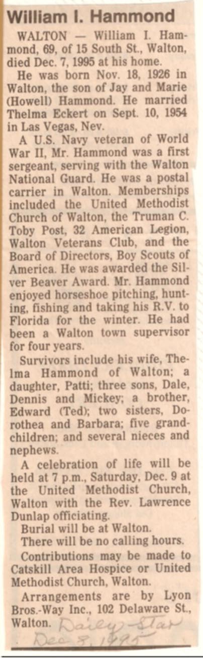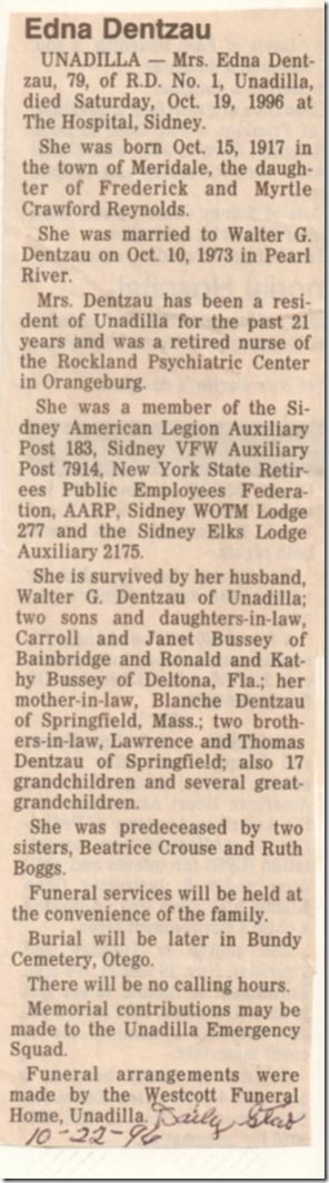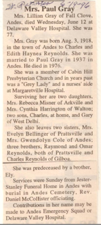 Links to obituaries from a scrapbook of my Mother-in-law’s. Where "Star" is written it referred to the Daily Star, Oneonta, NY. Dates should be self explanatory or written on. --Pat Gray - dpgray556@gmail.com