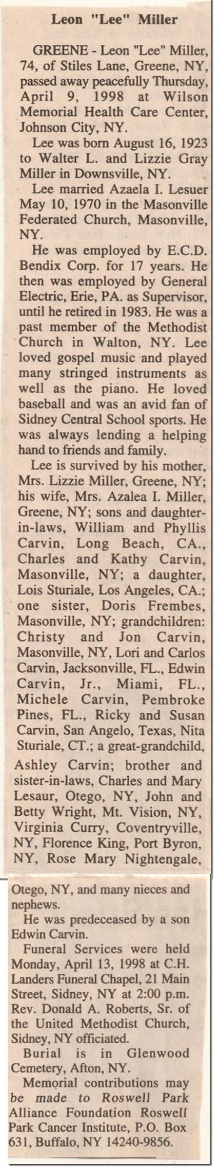 - Leon 'Lee' Miller - d. Apr. 9, 1998