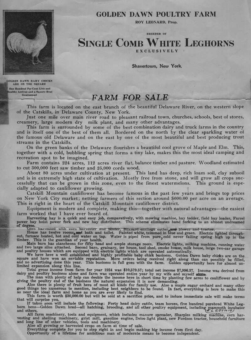 ![]() Delaware County NY Genealogy and History Site![]() FARM LIFE - SHAVERTOWN - Golden Dawn Poultry Farm - 224 acres