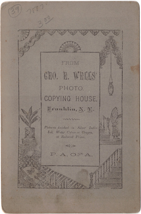 This is believed to be somewhere in Delaware County as the photographer was from Franklin NY. I'd say it dates from the 1880's. There is a distinctive building at right, but I've been unable to identify it or any of the other buildings in the picture, hoping they would point to the town. It certainly does not look like other photo's from Franklin, but I realize it may all be about angles.