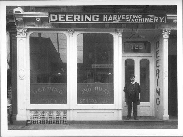 In the window it looks like JNO. NILES is the general agent of the Deering Harvesting Machinery. This could be Jonathan Niles 1847-1928 who is buried in the Walton Cemetery.